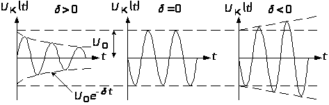 Если проводимость потерь G>Э> компенсировать отрицательной вносимой проводимостью G>АП>, то при = 0 возникшие в контуре колебания будут продолжаться бесконечно долго, т.е. станут незатухающими (рис. 8.24 б). Если же по абсолютной величине вносимая отрицательная проводимость будет больше проводимости потерь (|G>АП>| > G>Э>), то > 0 и колебания в контуре будут нарастать (рис. 8.24 в), т.е. возникают условия самовозбуждения.