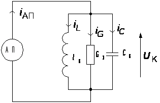 Изобразим активный прибор через его проводимость – G>АП> и представим эквивалентную схему автогенератора (рис. 8.22) по переменному току в следующем виде (рис. 8.23):