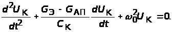 Уравнение (8.13) получило название дифференциального уравнения автогенератора. Оно является нелинейным дифференциальным уравнением второго порядка, так как коэффициент при первой производной G>АП> (крутизна вольт-амперной характеристики нелинейного элемента) зависит от переменной U>К> и совпадает с дифференциальным уравнением колебательного контура (тема 3.1). В общем случае решения уравнений такого типа неизвестны. Существуют приближенные методы, позволяющие получить результаты с заданной степенью точности (особенно на ЭВМ). Следует однако иметь ввиду, что в начале зарождения колебаний амплитуда их очень мала и рабочая область на характеристике будет линейной, где бы не находилась рабочая точка. Это означает, что G>АП> (крутизна вольт-амперной характеристики нелинейного элемента) не будет зависеть от U>К> и дифференциальное уравнение окажется линейным. Общим решением такого уравнения (8.13) является временная зависимость напряжения на колебательном контуре: