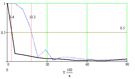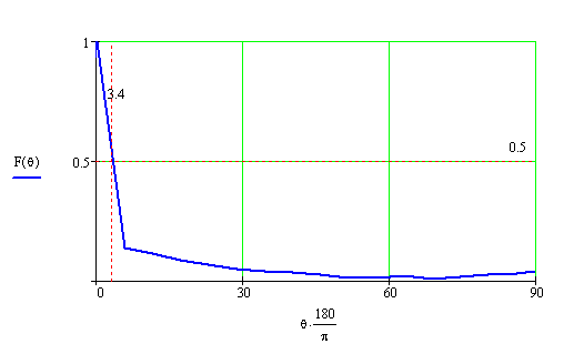 ширина ДН по уровню 0.5 в плоскости