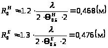 Для Е и Н плоскостей соответственно найдем радиус раскрыва: