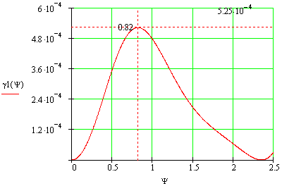 Построим график функции γ`(>0>), по максимуму которого определим угол раскрыва зеркала.