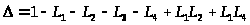 Определитель системы включает 4 контура и 2 пары некасающихся контуров L>1>,L>2>; L>1>,L>4>