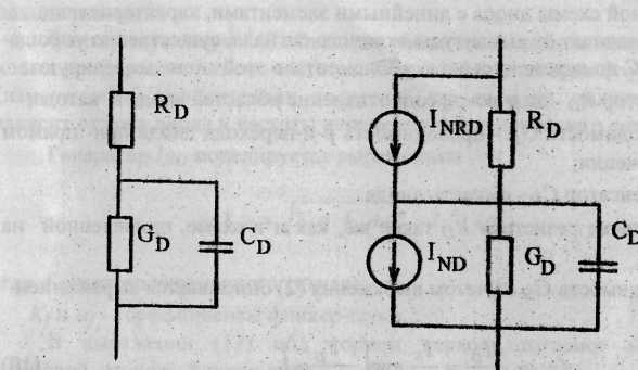 Рис 3. Малосигнальная (а) и шумовая (б) эквивалентные схемы диода