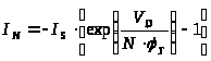 В свою очередь эти токи описываются выражениями, основанными на экспоненциальной аппроксимации зависимости концентрации носителей заряда от напряжения, приложенного к р-п - переходу (соотношение Больцмана):