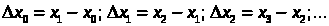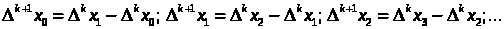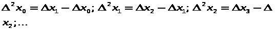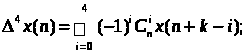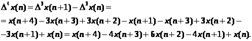 Аналогично определяются разности третьего и четвёртого порядков. Выполнив подстановку и приведение подобных получим следующие выражения: