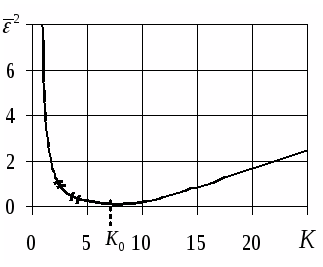 Рис. 11. Графік залежності середньоквадратичної помилки від коефіцієнта підсилення.
