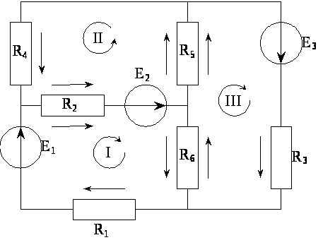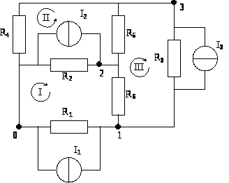 Для этого, рассчитаем напряжение между точкам А и Б методом контурных токов: