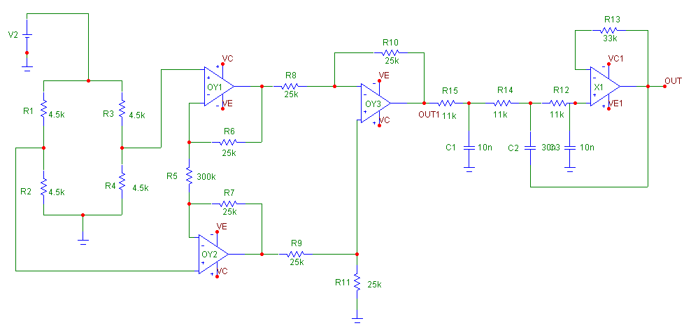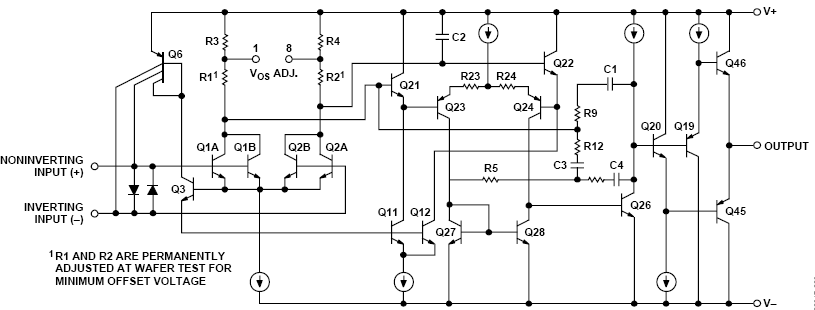 Рис.19. Функциональная схема малошумящего прецизионного усилителя OP27.