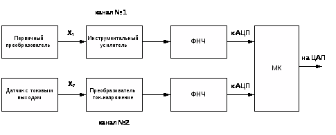 Автоматизация различных технологических процессов, эффективное управление различными агрегатами, машинами, механизмами требуют многочисленных измерений разнообразных физических величин. Для организации сбора данных с датчиков используется микроконтроллер, с помощью которого осуществляется контроль над технологическими процессами в производстве. Между датчиком и микроконтроллером обязательно должен присутствовать канал обработки данных, который осуществляет усиление, фильтрацию и нормирование сигнала, подавление синфазной помехи; производится нелинейная обработка сигнала с целью линеаризации характеристики датчика и приведение аналогового сигнала к виду, пригодному для ввода в аналого-цифровой преобразователь (АЦП). В ходе выполнения данного курсового проекта необходимо синтезировать устройство согласования первичного преобразователя (датчика) с микроконтроллером. В данном устройстве первым узлом является датчик, а АЦП является оконечным узлом проектируемого устройства, и все другие составные функциональные единицы прямо или косвенно обеспечивают его нормальное функционирование. Синтезируемое устройство содержит два параллельных канала передачи сигналов: датчик – усилитель – фильтр нижних частот – аналого-цифровой преобразователь.