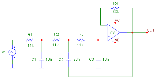 Рис.3. Схема ФНЧ в MicroCAP 8.