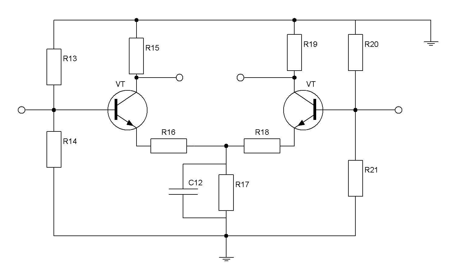 Оскільки у нас симетричне навантаження то будемо вести розрахунки на одне плече ,відповідно резистори R>13>=R>20 >, R>14>=R>21 >, R>15>=R>19> , R>16>=R>18>.