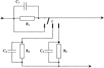 Де S – ключ, який встановлюється в одне з трьох положень, тим самим змінюючи коефіцієнт ділення.