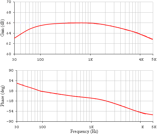 Для забезпечення роботи підсилювача в двох діапазонах частот (50 Гц – 6,4 кГц; 150 Гц – 4,5 кГц), потрібно змінювати розділовий конденсатор С1 для забезпечення необхідної смуги пропускання на рівні -3 дБ, тобто, щоб частотні спотворення на крайніх частотах діапазонів дорівнювали 3 дБ.