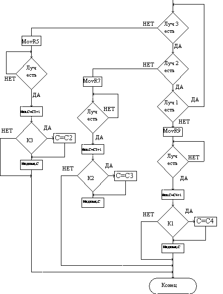 Для реализации программы подсчета деталей, идущих по конвейеру составим следующею функциональную схему.