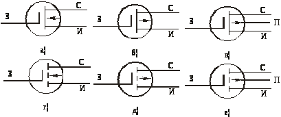 Рисунок 5.6 – Условное обозначение МДП - транзисторов: