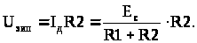 От выбранного значения тока делителя Iд = Ес/(R1+R2) зависят сопротивления резисторов R1 и R2. Поэтому ток делителя выбирают исходя из обеспечения требуемого входного сопротивления усилителя.
