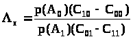 R = C11 P(A1) P(A1*/A1) + C01 P(A1) P(A0*/A1) + C10 P(A0) P(A1*/A0) + C00 P(A0) P(A0*/A0)