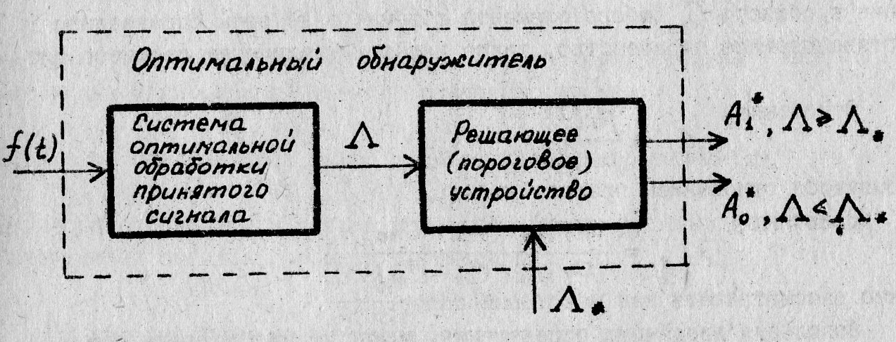 Отношение правдоподобия (или любая монотонная функция его) является отражением структуры оптимальной системы обработки принятого сигнала в структуре оптимального обнаружителя (рис.7).