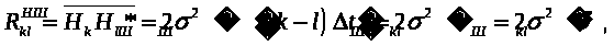 Вероятностные характеристики шума описываются многомерной плотностью вероятности совокупности его дискретных значений, взятых с интервалом времени ∆t >> τш. При этом корреляционные свойства его дискретных значений описываются символом Кронекера δkl: