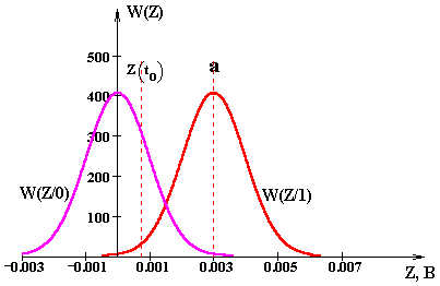 При определении вероятности ошибки считаем, что сигналы соответствующие символам “1” и “0”, являются взаимнопротивоположными и решение о переданном символе принимается с использованием пороговой решающей схемы синхронным способом.