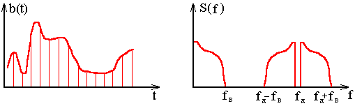 Полученный выхода АЦП сигнал поступает на вход Амплитудного модулятора, где последовательность двоичных импульсов преобразуется в радиоимпульсы, которые поступают непосредственно в канал связи.