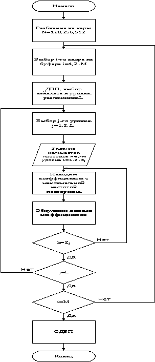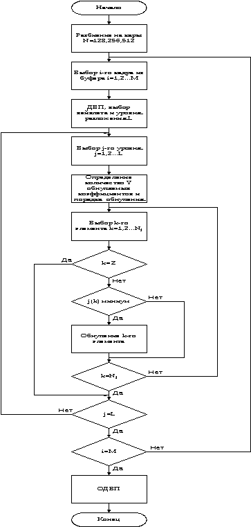 - обнуление данных коэффициентов на каждом i-м уровне разложения;
