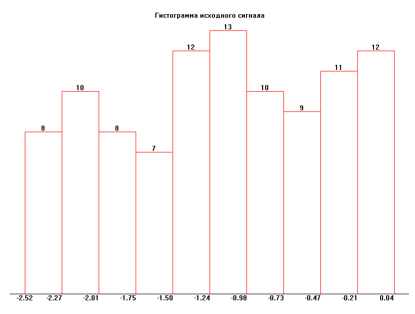 - теоретическая вероятность пребывания случайного сигнала в пределах каждого из интервалов X, N - общее число исследуемых отсчетов сигнала N>i> = 10