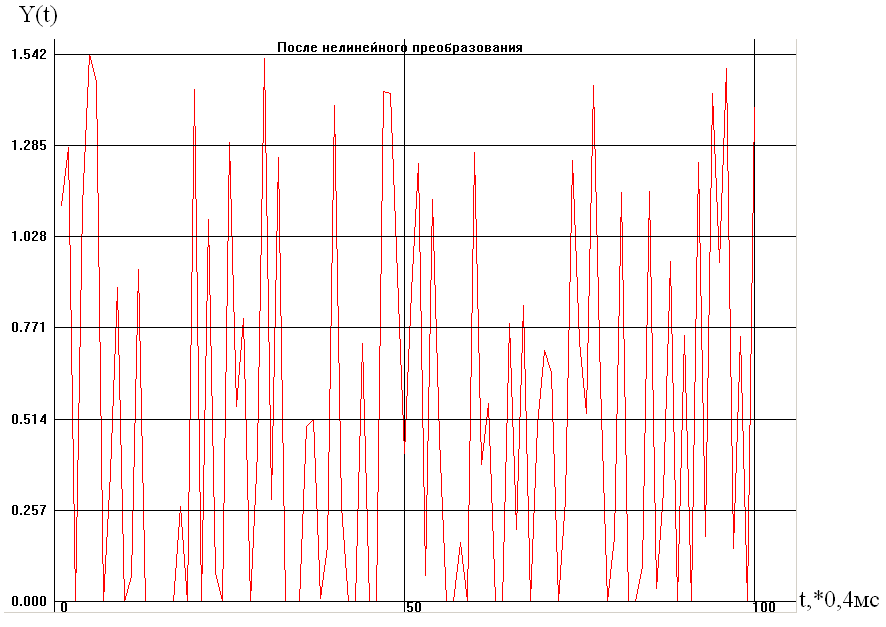 В результате преобразования случайного процесса X(n) в безынерционной нелинейной цепи мы получили новый сигнал Y(n).