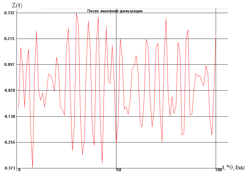 В результате фильтрации случайного процесса Y(n) в инерционной цепи (ПФ, f0 = 500 Гц, Q = 3) мы получили новый сигнал Z(n).