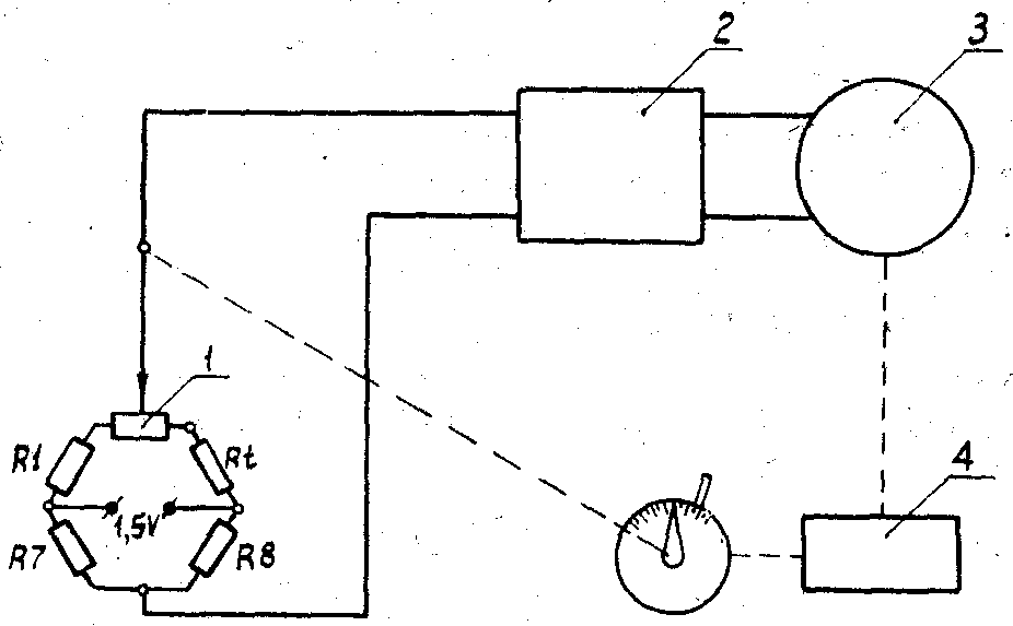 Широко распространены автоматические мосты для измерения и записи температуры, работающие в комплекте с терморезистором (рис. 1)