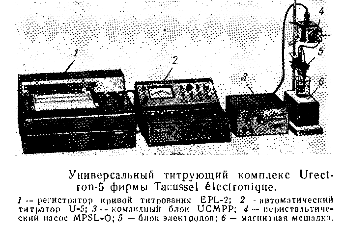 Французской фирмой Tacussel electronique выпущен па рынок универсальный комплекс для различного вида титрований типа Urectron-5, состоящий из отдельных блоков.