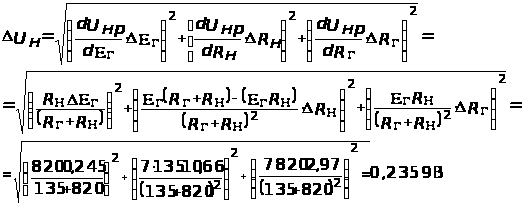 Основна припустима відносна похибка представляється і в іншому вигляді: y>відн> = ±( a + bU>кз> /U>x> ), де а і b – постійні числа, які характеризують клас точності приладу. Перший член похибки не залежить від показників приладу, а другий збільшується при зменьшенні U>x> , по гіперболічному закону.