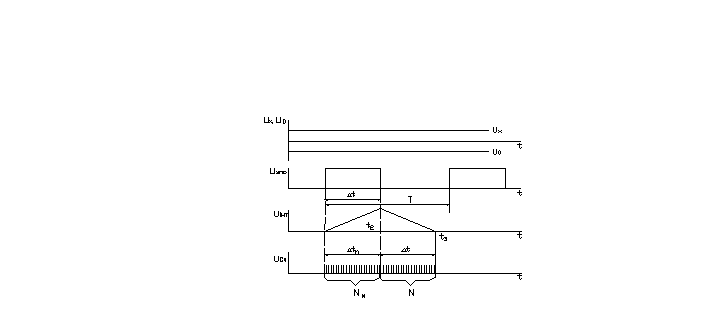 Мал.2. Схема ЦВ з час-імпульс перетворенням та часові діаграми напруг, які пояснюють принцип компенсації.
