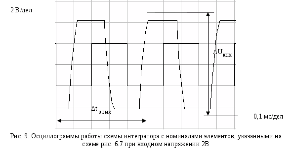 В. U>ВЫХ >= - R>2>∙C>1>∙ ∆ U>ВХ> / ∆t = - R>2>∙C>1>∙V>U>> ВХ> = - 2В,