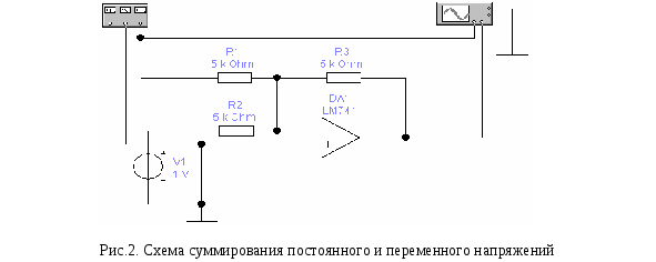 1. Суммирование постоянных напряжений моделировалось на схеме рис.1.