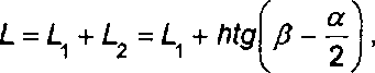 где h - высота установки камеры; а - угол зрения камеры; р - угол между оптической осью камеры и вертикалью; L - угол зрения камеры в вертикальной плоскости; Ц - расстояние по горизонтали - удаление выходного зрачка телевизионной камеры от поверхности ее крепления; L>2> - размер непросматриваемой камерой зоны без учета удаления точки установки камеры от вертикальной поверхности крепления.