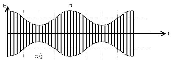 Е>2>= C* Σ [1sin2 ω(t) - cos2 ω(t)] *sin [(F>o>±F>∂>) t + π/2]