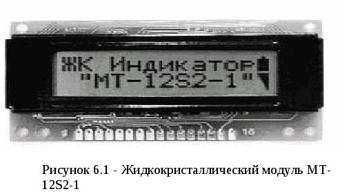 предусилительные схемы, ввиду наличия широкой номенклатуры изготавливаемых сенсоров, в том числе и со встроенными предусилителями сигнала. Схема устройства управления включает в себя систему сбора данных, построенную на одной микросхеме КР572ПВ4. Микросхема имеет 8 аналоговых входов и осуществляет последовательно преобразование по каждому из них. Аналоговый сигнал преобразуется в 8-значное двоичное число. Коэффициент нелинейности не более 0.3% Каждому аналоговому каналу соответствует ячейка оперативной памяти. Считывание данных может происходить асинхронно с получением результатов преобразования. Данный АЦП позволяет «оцифровывать» сигнал с напряжением до 2.5В. На полный цикл преобразования по всем восьми каналам требуется :не более 256 мкс, при тактовой частоте 2.5 Мгц. Ввиду того что в разрабатываемом устройстве нет необходимости в быстроте преобразования, скорость преобразования не имеет особого значения. Тактовым генератором для микросхемы сбора данных является таймер КР1008ВИ1. Для отображения информации применён ЖК-модуль MT-12S2-1 .(LCD) Данное индикаторное устройство позволяет отображать как цифровую так и символьную информацию. Размер экрана 2х12 символов при матрице символа 5х8. ЖК-модуль имеет встроенный контроллер управления экраном, аналогичный SED1520DOA фирмы SEIKO EPSON. Шина данных модуля имеет восемь разрядов. Назначение выводов ЖК-модуля (рисунок 3.3) и протокол обмена данными с ним показаны (рисунок 3.4) будут затронуты подробнее при разработке алгоритма программы.