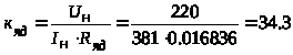 Кп = Uн / Uун = 220 / 6.25 = 35,2