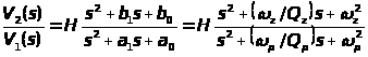 В этом выражении Н>0> — коэффициент передачи на бесконечно большой частоте, ω>n> – собственная частота, Q –добротность.