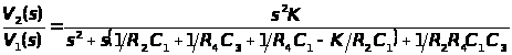 Реализацию ФВЧ второго порядка можно получить подстановкой К=1. Полагая m=С>3>/С>1>, и n=R>4>/R>2> и подставляя С>1>=С и R>2>=R, получаем вместо (1.2)