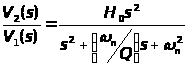 Обобщенная передаточная функция по напряжению фильтра верхних частот второго порядка имеет вид