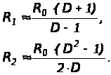 Для П-образной схемы аттенюатора номиналы элементов определяются из следующих соотношений: