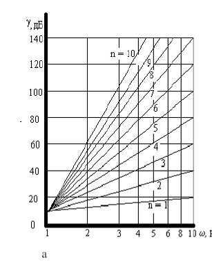 Фильтр имеет максимально плоскую характеристику в полосе пропускания вблизи нулевой частоты и далее монотонно возрастающее затухание с бесконечным затуханием при =.
