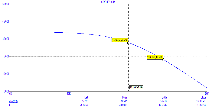 Фильтр низких частот представляет собой устройство, пропускающее сигналы низких частот и подавляющее сигналы высоких частот. Характеристика фильтра Баттерворда содержит пульсации в полосе пропускания и монотонна в полосе задерживания. АЧХ имеет полосу пропускания от 0 до f>с>=20 КГц и полосу подавления от f>s>=30 КГц и до бесконечности. Полоса пропускания - диапазон частот, в котором затухание минимально. Полоса подавления - диапазон частот, в котором затухание фильтра максимально.