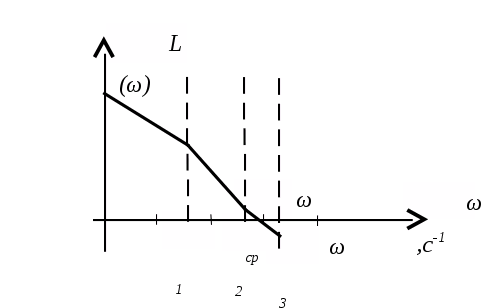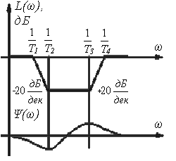 Типичная ЛАЧХ, соответствующая желаемым передаточным функциям, изображена на рис.1. На характеристике различают три диапазона частот: