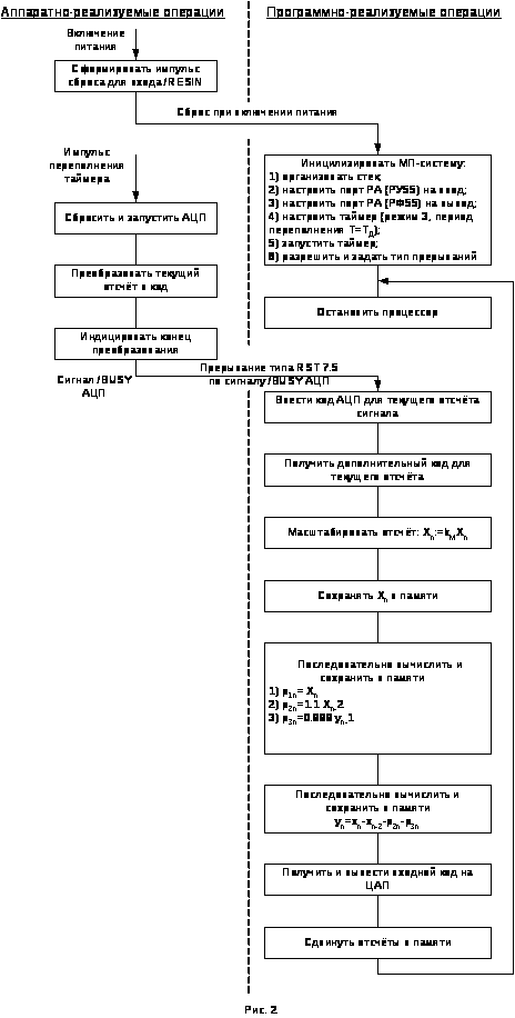 Последующие операции (ввод, вывод, преобразование кодов, оперативные обращения к памяти, арифметические преобразования) в каждом цикле работы фильтра выполняются под управлением рабочей программы фильтра.