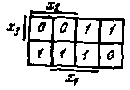 При реалізації функції від чотирьох перемінних з використанням мультиплексора, що має два керуючі входу (рис. 1.4), треба виключити шістьох різних пар перемінних (x>4>x>3>, x>4>x>2>, x>4>x>1>, x>3>x>2>, x>3>x>1>, x>2>x>1>,). При виключенні кожної пари перемінних діаграму Вейча заданої функції можна розглядати як чотири самостійні діаграми для залишкових функцій f>0>, f>1>, f>2>, f>3>.