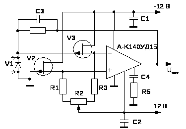 Ця схема також доцільна у використанні якщо немає операційного підсилювача з малими вхідними струмами.